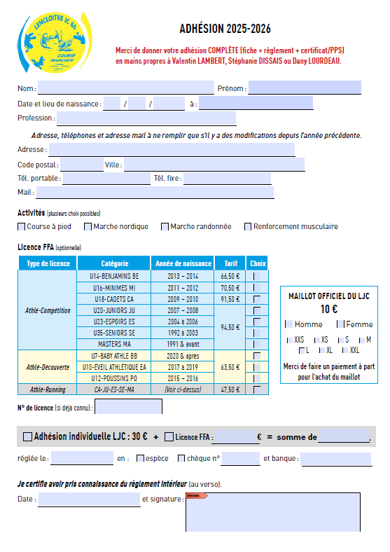 Adhésion 2025/2026